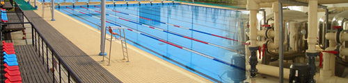游泳馆馆内设有50×21M标准泳池一座,25×21M室内短道标准池一座和一个标准为3600平方米的宽阔泳池,泳池的二分之一配备了专为少儿游泳,娱乐及教学而设计的泳池,水深为0.6米,可提高少儿游泳的安全性,而另一半为深水区,是适应不同水平成人游泳者的需要,泳池两边可同时容纳800人的休闲区。