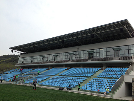 该场馆由香港、大连两地联手设计,庭院式的建筑风格温婉大气,令人惊艳,完全不负大连体育之乡、田径名城的美誉,各功能区之间有园林小径相贯通,把建筑与优美的环境融为一体,绿化覆盖率达到60%,充分体现了绿色环保理念,被称为本次全运会“更绿色”的比赛场馆。此外,场馆在功能设置上颇有远见,完全符合国家级标准赛马场规格,不仅解决了当下全运会赛事举办之需,在长期发展中还能够有力地推动大连赛马娱乐业的拓展和提升,同时也将丰富大连南部旅游的体育文化功能。