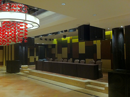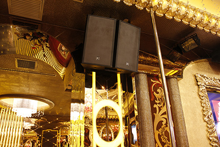 主扩音箱15寸HF151(4只)+中置音箱12寸HF121(2只)+补声音箱10寸HF101F(2只)+ 低频音箱双18寸ΣJ218(2只)+ 补声音箱X10i(2只)+专业后级功放R432(1台)、R416(1台)、R2261台+ 补声功放R208R(1台)+专业数字处理器C2600(1台)+前级效果器DCM33e (1台)+时序电源PX128X(1台)