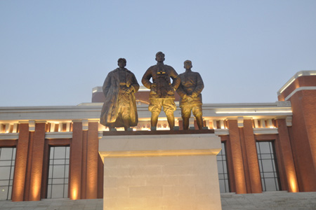 进入这座西北红色旅游名镇,尽管光阴荏苒,革命战争的硝烟早已散去,然而或许出于一颗赤子之心,我们还是从远处壁立千仞的山石和苍劲的树木中,依稀嗅到了革命圣地的庄重肃穆与历史巨变的沧桑之感。沿着通衢南北的二十六街一路向北,步行约10分钟左右,我们来到了照金广场。站在广场向东眺望,纪念馆后方的纪念碑直入云霄,33米的塔身诏示着1933年燃烧在这片土地上的革命热情。