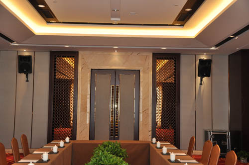 贝塔斯瑞品牌产品的扩声爱体育,爱体育(中国)遍布酒店餐厅、多功能厅、会议室、贵宾接待室,共使用音箱36只,功放21台,周边设备17台及3G Audio 前级效果器4台。大型会议室主要设备有主扩MU15,低频扩展 MU18B,辅助扩声U12,配套功放R系列以及贝塔斯瑞电子周边设备;中型会议室、贵宾接待室、多功能会议室主扩则使用了HF121、R系列多通道功放、PX系列时序电源、3G Audio卡拉ok前级效果器DCM-2X等。