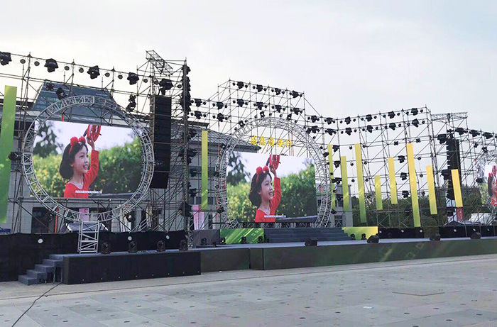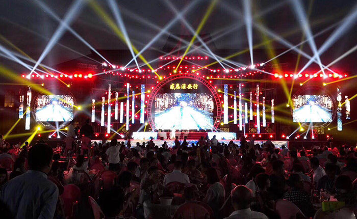 为了呈现出更好的视觉效果,工作人员介绍,今年的舞台和设计上以龙虾整个身体每个细节元素作为设计的灵感,舞美主体以大面积的大屏和彩幕支撑,舞台两侧未用大屏或彩幕,大量的“留黑”为灯光的表现提供了空间,主扩声系统则采用了Betathree TL-line大型线阵扩声系统,由12组TLA-101F和8只TLB-218F配合组成组成指向性宽广、投射距离远、声压大、听感良好的扩声系统。