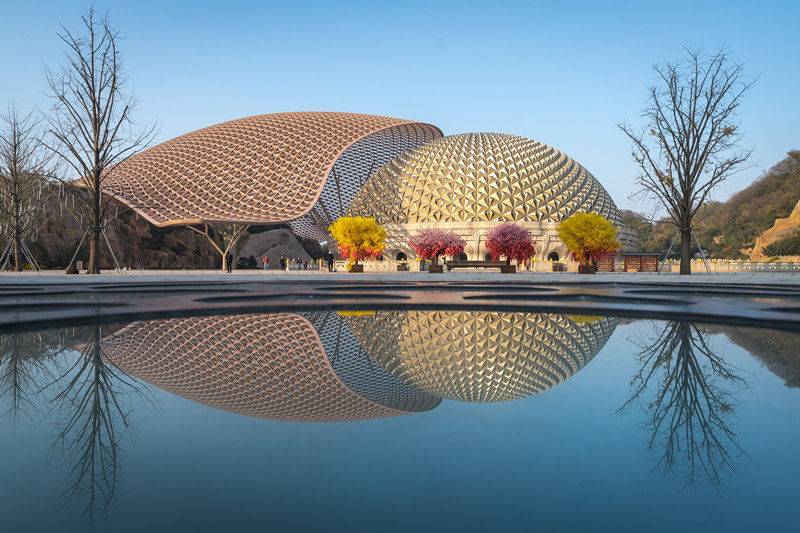 佛顶宫中已开放的一期项目包括“一路、一宫、一塔、一叶”四个区域。而其中更吸引眼球的便是位于布局中心的巨大穹顶——“佛顶宫”