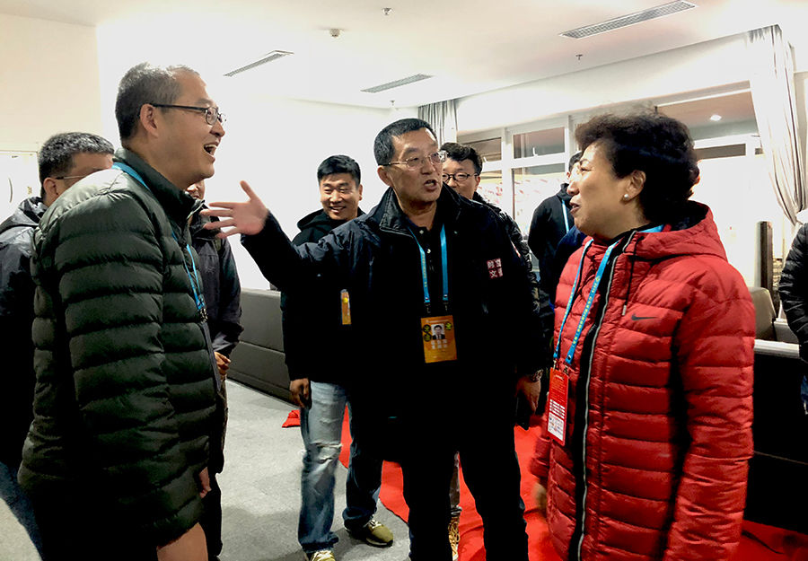 演出结束后,栾市长携青岛市诸领导慰问了开幕式文创团队,总导演王建钢向领导汇报了策划创意和数字媒体团队-时空文化、现场音响导演中央电视台刘一兵老师、设备保驾团队三基音响及“贝塔斯瑞”。栾市长总结说:演出真的很棒!领导很满意!!在这么短的时间内,能有这么精彩的节目呈现给全省人民。一方面说明你们水平高,另外说明大家很有凝具力有干劲。我代表市政府、代表主委会表示向各位表示感谢!