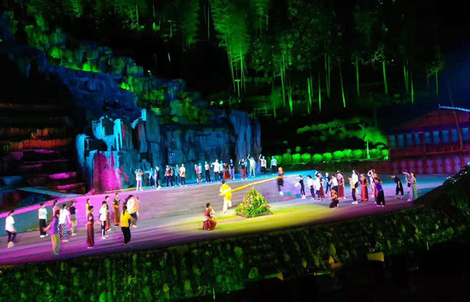 铜仁市江口县太平镇梵净山村寨沙侗寨演出剧场是半露天演出型剧场,部分环境露天演出,考虑到剧场演出对于系统的要求较高,为了利于系统维护,我们采用了贝塔斯瑞新型号三分频无源线阵SLA10H 16只、SLA212B 3只、TLB-218F 6只。主扩线阵吊挂于观众区前方顶棚,呈斜度向下辐射观众区,不仅保证了观众的听音感受,扩声效果也很好。