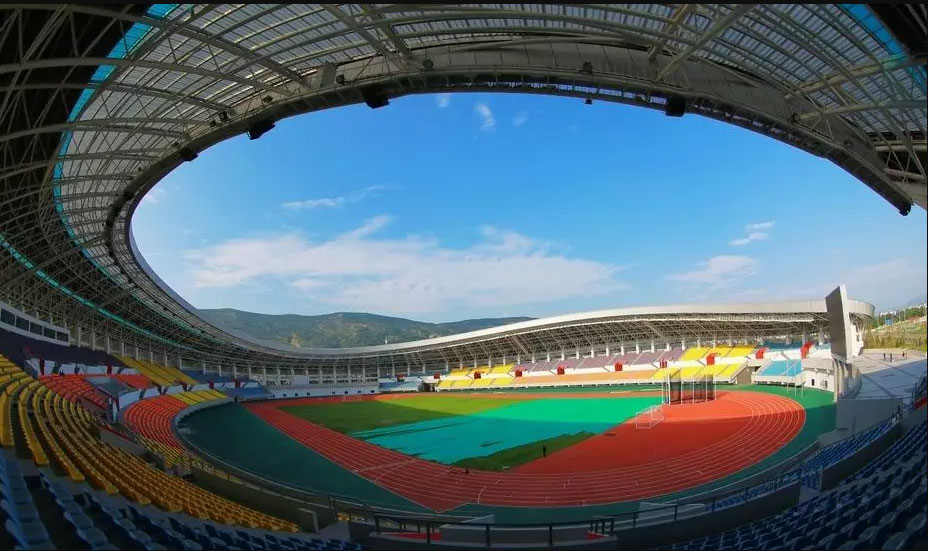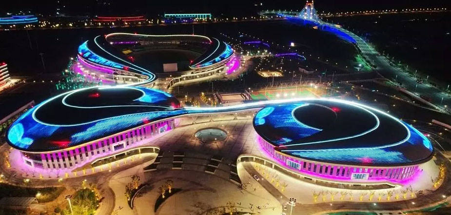 设施齐全、功能完善的天水体育中心由“一场两馆”构成,以“丝绸之路”为设计理念,以“伏羲文化”为精神内涵,以“石窟文化”为表达形式,以“绿色生态”为建筑特征,一馆两场通过流线性屋顶“飘带”串联成一体,既相互独立又联系密切,整体建筑造型独特,看上去科技感十足,贴合了“高新”定位。