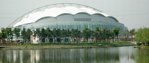 昆山市体育中心位于昆山市西部生态居住区,与占地3300多亩的森林公园相映成辉,北临马鞍山路,南靠前进西路,东依339省道,西连昆山大学城,总占地面积近千亩。体育中心的设计定位是能承担国际国内单项比赛和国内综合性运动会,并兼具娱乐、会展、商贸的多功能体育公园。体育中心内建有一座拥有5400个座位、内主赛场为40M×70M、高38米的符合国际化标准的多功能体育馆,一座拥有30000个座位、内场设8×400米符合国际标准的田径跑道和一个68×108米标准草坪足球场、建筑高度达43米的体育场,另配套高标准网球场和游泳馆及其他服务设施。