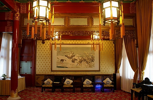 钓鱼台国宾馆座落在北京西郊古钓鱼台风景区,全园面积为四十二万平方米,全馆总建筑面积十六万五千平方米.其中湖水面积五万平方米。钓鱼台国宾馆是专门接待来华访问的国家元首、政府首脑以及世界知名人士及党和国家领导人从事外事活动的重要场所。