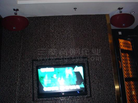 同时,为了匹配酒店客房别致高雅的格调。三基公司因地制宜,以三只色彩各异、装置轻便的[β3]QS1000专业KTV音箱作为主扩声, 中置A80专业中置功放推动VS710F专业全频音箱增加声音的通透力,并且,采用两只ΣJ212高灵敏度宽指向号角单12寸全频音箱辅助扩声,使歌唱更轻松,声场更均匀,人声更清晰饱满。