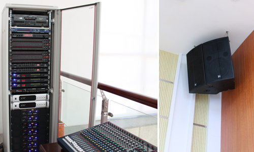 会议室则使用了ΣS215、ΣS212、ΣJ215、ΣB118D等专业音箱作为主扩,电子部分仍使用了UA系列专业功放、ΣC2600、PX系列等。