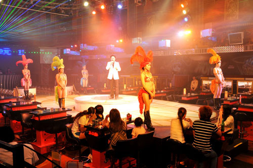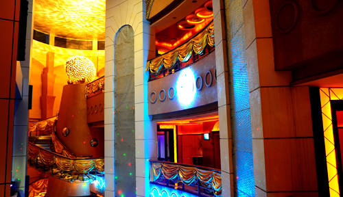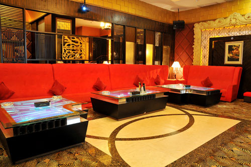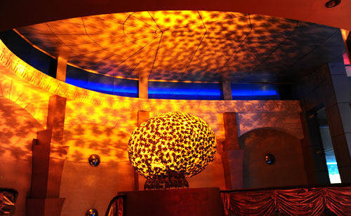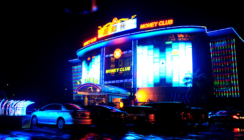 LED霓虹满墙遍布;怀旧的岁月光影,让名星墙成为一迷人的风景,多彩的激光与形体融为一体,艺术与光影的结合蛋形灯罩将斑驳的光影洒满穹顶,蝶纹发光吊顶将五彩的光影映满包房,在这个光影的世界,你可以感受光的魅力;在这个光影的世界,你可以尽享夜的甘涩。