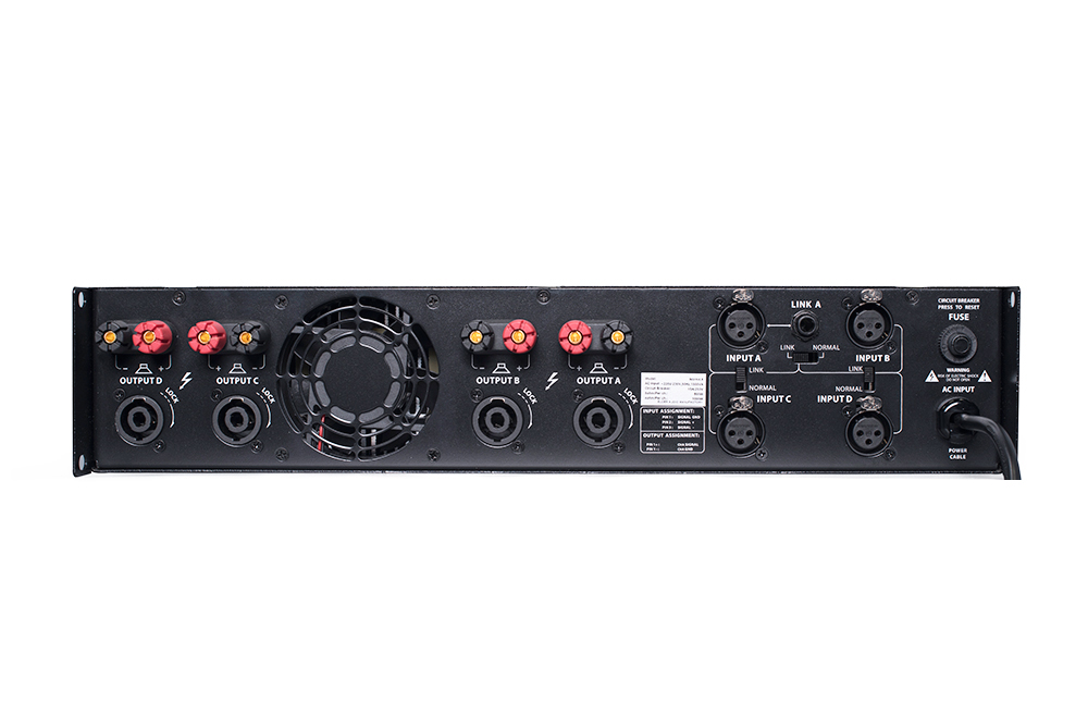 级联输出:1×TRS插座 功率输出:4×NL4插座 + 4×接线柱