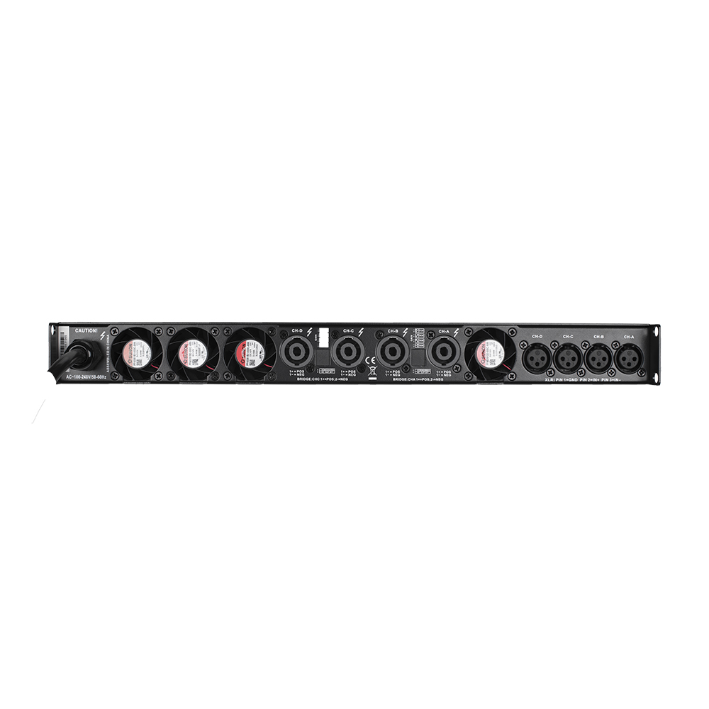 DD系列数字功率放大器支持定阻定压输出、支持dante网络数字音频。此系列功放采用公司自主开发的多环路调控技木,拥有出色的技术指标,特别针对低阻抗、大电流研发的功率放大技术,令功放拥有超过90%的效率和出色的稳定性;开关电源采用有源PFC和软开关技术,并针对音频功率放大器做了优化设计,能适应恶劣的电网环境,为功放提供持续澎拜的能源供给。DD系列数宇功率放大器搭載高性能音频专用DSP、高动态高精度AD/DA转换器、Dante Urtimo 4×4网络音频传输芯片。可通过一根网线实现音频传输和功放监控。可接收模拟音频信号和Dante数字音频信号。DD系列功放具备可靠性高、功率足、音色出众、适应能力强等特点。稳定的2欧驱动能力,完美适用于线阵列。