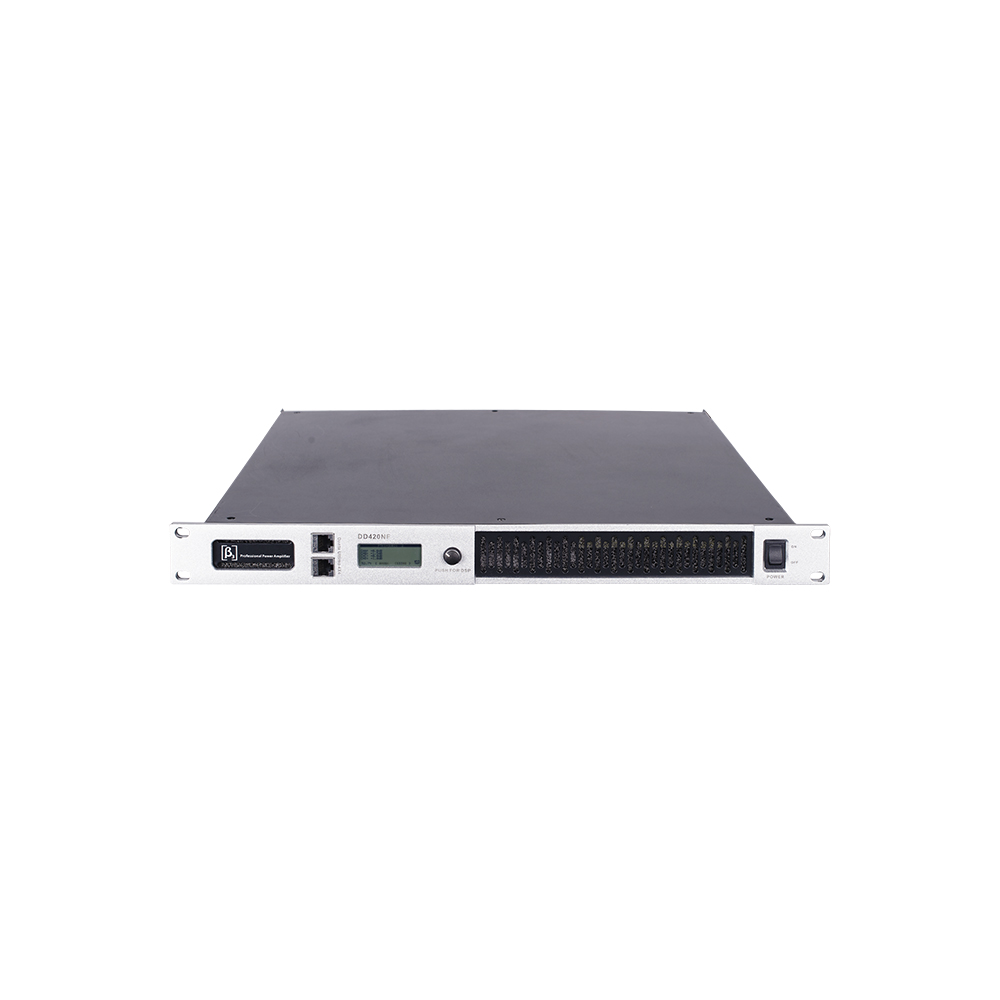 DD系列数字功率放大器支持定阻定压输出、支持dante网络数字音频。此系列功放采用公司自主开发的多环路调控技木,拥有出色的技术指标,特别针对低阻抗、大电流研发的功率放大技术,令功放拥有超过90%的效率和出色的稳定性;开关电源采用有源PFC和软开关技术,并针对音频功率放大器做了优化设计,能适应恶劣的电网环境,为功放提供持续澎拜的能源供给。DD系列数宇功率放大器搭載高性能音频专用DSP、高动态高精度AD/DA转换器、Dante Urtimo 4×4网络音频传输芯片。可通过一根网线实现音频传输和功放监控。可接收模拟音频信号和Dante数字音频信号。DD系列功放具备可靠性高、功率足、音色出众、适应能力强等特点。稳定的2欧驱动能力,完美适用于线阵列。