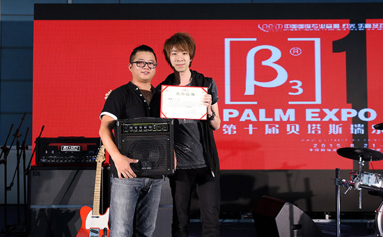 纪斌颁发Palm展第10届贝塔斯瑞乐队大赛电吉他组更佳原创:黄立炜
