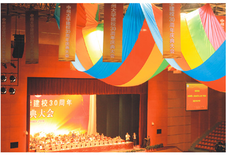 此次庆典在中州大学新校区文体中心隆重举办。各级政府领导,合作单位、高校、企业的代表,社会各界朋友,及上千名校友代表,中州大学领导班子全体成员以及5千余名师生代表出席了庆典仪式。