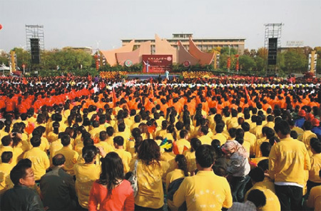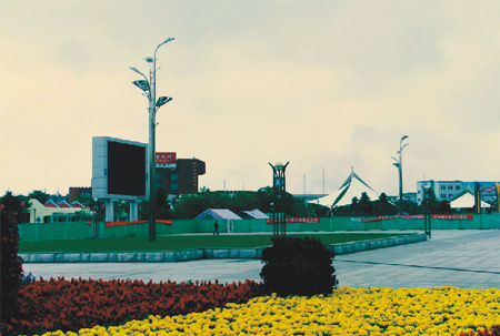 广场位于市区新华路南侧,占地约8.6公顷,是一个集休憩、游乐、观赏、集会和庆典活动等多种功能为一体的综合性广场。整体由市政广场、文化广场和绿色广场三部分组成。